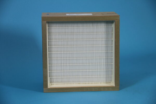 Dimensioni 305x305x150 mm, arrestanza/efficienza media H13, portata nominale 400 mc/h, media filtrante in microfibra di vetro, telaio in legno, guarnizione lato uscita aria.